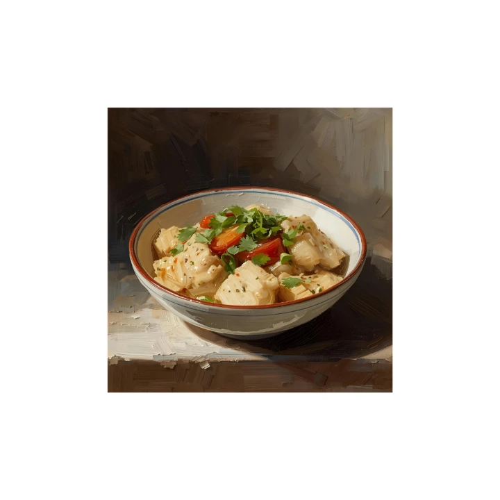 White Chicken ek creamy aur mild-flavor wali dish hoti hai jo specially naan, paratha ya rice ke sath bohat pasand ki jati hai. Isme boneless chicken ko halka sa fry karke usme cream, dahi, white pepper, garlic paste, green chillies aur makhmal jaisa white gravy masala add kiya jata hai. Ye gravy dheemi aanch par pakti hai jisse chicken soft ho jata hai aur sauce thick aur rich ban jati hai. White Chicken ki khaas baat ye hoti hai ke ye bilkul bhi teekhi nahi hoti, isliye bachon aur family dinners ke liye perfect choice hai.